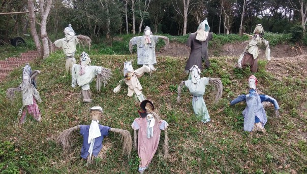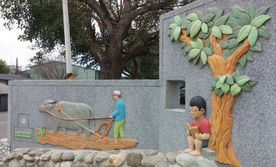 經過酒足飯飽,大家帶著滿足的心情上車,再次驅車前進下個目的地,稻米原鄉館。一到地點,蘊含歷史氣息的紅磚建築就吸引了我們的目光,位於萬安社區的稻米原鄉館,擺有早期常用的莊稼農具,訴說著農村的古老歲月。室內清新明亮、陳設雅緻介紹池上有機米栽種及販售各農家獨特米種,更有客家媽媽們的傳統手藝,醃製品及研發米食等,讓人不自覺融入這田園氛圍。而且還提供米畫、DIY製作稻草人、焢土窯、套裝行程等等活動,帶民眾遊覽池上風光外,也營造出適合親子遊玩的景點。最後離開前,眼尖的夥伴發現被金城武拿過的「奉茶」茶壺,於是相機、手機再度不吝嗇地取景,也讓想朝聖金城武樹的我們,內心沸騰起來,用極快的速度完成拍攝,迅速上車、揚長而去。